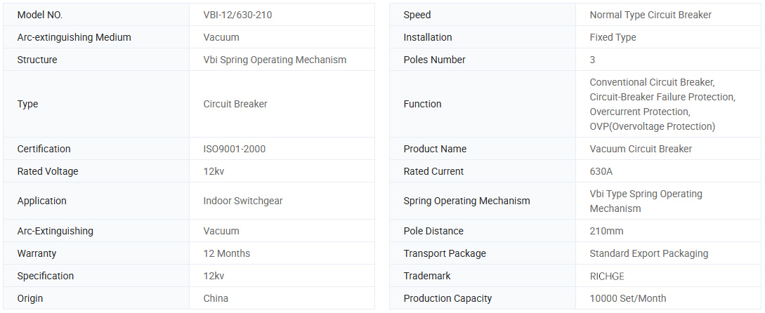 Bộ ngắt mạch chân không điện áp cao VBI-12 là AC 50Hz ba pha, điện áp định mức của thiết bị trong nhà 12kV, cho các doanh nghiệp công nghiệp và khai thác, nhà máy điện và trạm biến áp như kiểm soát và bảo vệ thiết bị điện, và cho hoạt động thường xuyên của địa điểm. Sản phẩm tuân thủ tiêu chuẩn GB1984 & IEC62271-100.