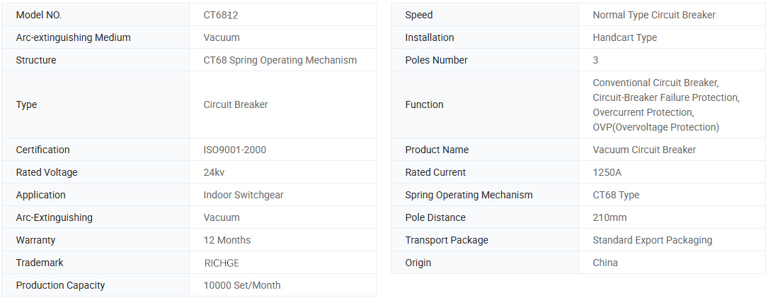 Mô hình CT68-12 sử dụng bộ ngắt mạch chân không trong nhà với cơ chế vận hành lò xo CT68. Đó là thiết bị phân phối điện trong nhà ba pha, 50 Hz với điện áp 12kV, chủ yếu được sử dụng trong các hệ thống điện phân tán, mỏ, dầu mỏ, công nghiệp hóa chất, luyện kim, xây dựng, vận chuyển, mỏ than và các thành phố. Nó được sử dụng rộng rãi để bảo vệ các thiết bị năng lượng cao áp khỏi dòng điện quá dòng, ngắn mạch, điện áp và điện áp quá mức, và có thể đảm bảo một cách đáng tin cậy hoạt động an toàn của thiết bị điện. Bộ ngắt mạch có thiết kế mô-đun, trong đó cơ chế vận hành và cơ thể bộ ngắt mạch có thể tách rời, cho phép thay thế và lắp đặt nhanh.