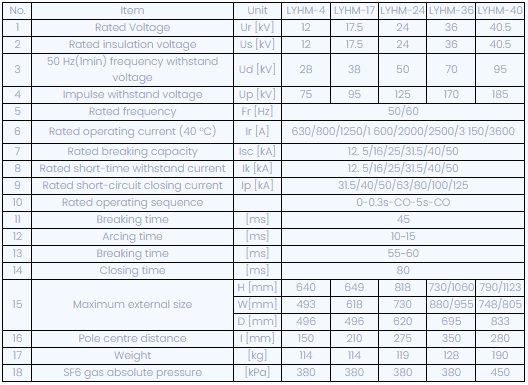 Bộ ngắt mạch điện áp trung bình LYHM4 sử dụng khí lưu huỳnh hexafluoride (SF6) làm môi trường dập tắt và cách điện. Khí SF6 có các đặc điểm phá vỡ trơn tru và sẽ không có hiện tượng đánh chặn khi phá vỡ dòng điện và không có điện áp hoạt động sẽ xảy ra. Đặc tính tuyệt vời này đảm bảo rằng bộ ngắt mạch có tuổi thọ điện dài. Và tác động đến thiết bị trong quá trình hoạt động, mức điện môi và ứng suất nhiệt sẽ không bị ảnh hưởng.