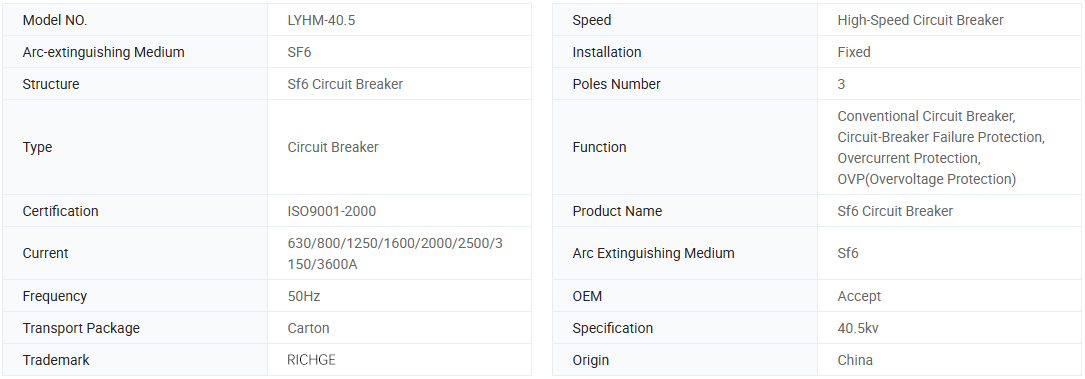 Các bộ ngắt mạch khí SF6 trung bình của LYHM sử dụng khí lưu huỳnh hexafluoride (SF6) làm hồ quang để dập tắt và cách điện môi trường.SF6 có các đặc điểm phá vỡ trơn tru, trong đó không có hiện tượng cắt nào xảy ra khi phá vỡ dòng điện và không có quá mức hoạt động được tạo ra. Đặc tính tuyệt vời này đảm bảo rằng bộ ngắt mạch có tuổi thọ điện dài. Nó không có tác động đến sốc, mức điện môi hoặc ứng suất nhiệt của thiết bị trong quá trình hoạt động. Cực cực của bộ ngắt mạch, tức là phần ngắt, là một hệ thống đóng không cần bảo trì cho sự sống. Tuổi thọ niêm phong phù hợp với IEC 62271-100 và CEI17-1. Xây dựng nhỏ gọn của bộ ngắt mạch đảm bảo rằng nó mạnh mẽ và đáng tin cậy.