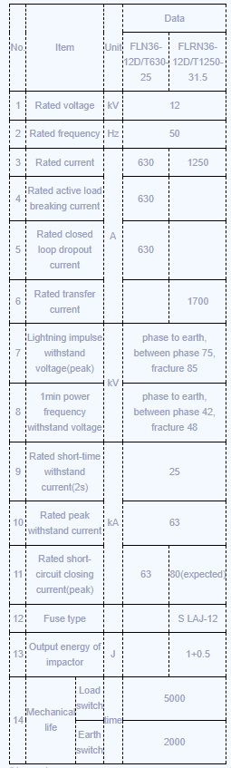 Công tắc tải FLN36-12D/T630-20 sử dụng khí SF6 làm phương tiện cách nhiệt và dập tắt hồ quang; có ba vị trí: đóng, mở và nối đất; Các tiếp xúc động và tĩnh có sự cô lập đôi, độ tin cậy cao hơn; tuổi thọ điện kéo dài (mức E3, mức hiện tại 100 lần); tuổi thọ cơ học kéo dài (cấp M2, 5000 lần); Xếp hạng ổn định nhiệt (4S) 20KA; Đóng và mở các vị trí là hoạt động điện hoặc thủ công, và vị trí nối đất là hoạt động thủ công; Nguồn cung cấp năng lượng hoạt động điện có sẵn trong AC220V, AC110V, DC220V. DC110V, DC48V, DC24V; có hoạt động điện và thủ công lồng vào nhau, và chức năng bảo vệ kết nối ngược nguồn cung cấp điện trở lại;