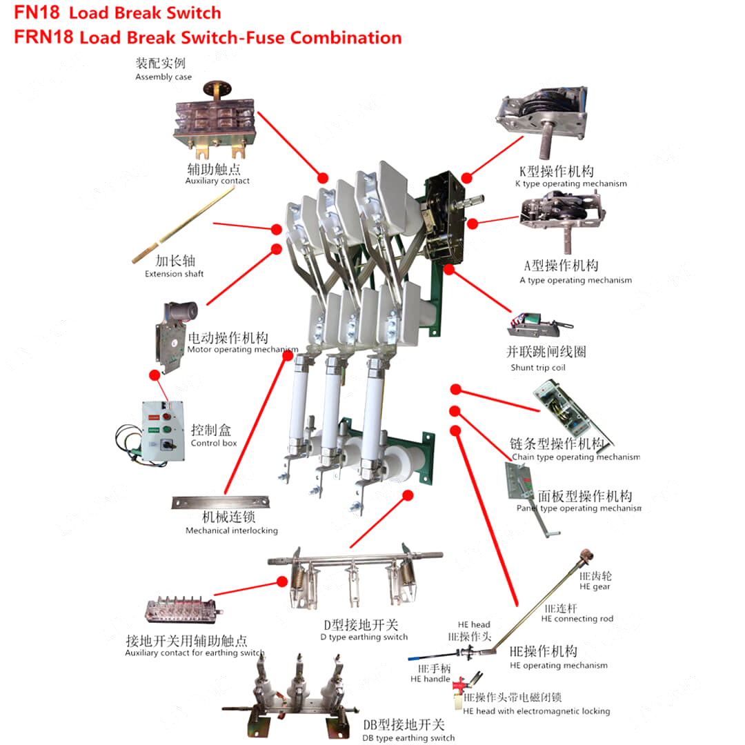 Công tắc tải trọng điện áp cao trong nhà FN18 có những ưu điểm của thiết kế dễ dàng, vận hành, cấu trúc nhỏ gọn, khối lượng nhỏ, chức năng đầy đủ, trọng lượng nhẹ, tốc độ phá vỡ nhanh và tốc độ đóng và độ tin cậy cao. Nó phù hợp với AC 50Hz, điện áp định mức 12kV, 24kV, hệ thống phân phối 630A và ba pha hiện tại được xếp hạng, đặc biệt đối với các dự án xây dựng và cải tạo mạng lưới thành phố, các tòa nhà cao tầng, cung cấp điện mạng của các cơ sở công cộng và là một sản phẩm lý tưởng cho bảo vệ biến áp và biến đổi loại hộp.