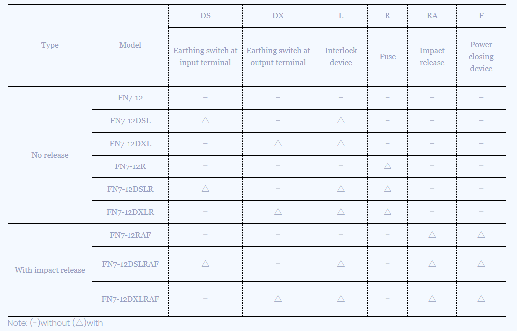 Công tắc ngắt tải FN7, thường đi kèm với cơ chế lò xo để bật và tắt nguồn cung cấp, tuy nhiên, tùy chọn với bộ ngắt mạch chân không cũng có sẵn. Tất nhiên, tùy chọn với bộ ngắt mạch chân không tốn kém hơn. Sự lựa chọn giữa hai người này hoàn toàn phụ thuộc vào khách hàng. Công tắc ngắt tải với bộ ngắt mạch chân không là tùy chọn đáng tin cậy hơn.FN7 Công tắc ngắt tải 36kv với cầu chì kết hợp điện áp cao。