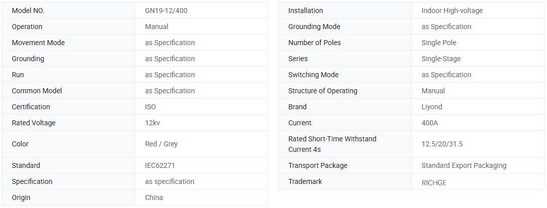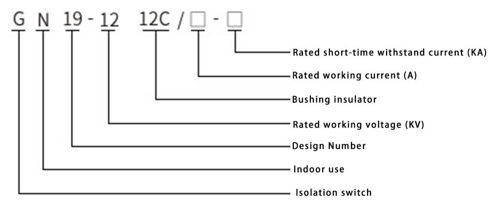 Công tắc ngắt HV trong nhà GN19-12(C) áp dụng cho hệ thống điện có điện áp định mức 12kV, AC 50/60Hz. Nó được trang bị cơ cấu vận hành bằng tay CS6-1 và được sử dụng để ngắt và tạo mạch khi không tải. Có thêm loại ô nhiễm, loại độ cao và loại chỉ báo nguồn điện. Nó được sản xuất theo tiêu chuẩn IEC 62271-102.