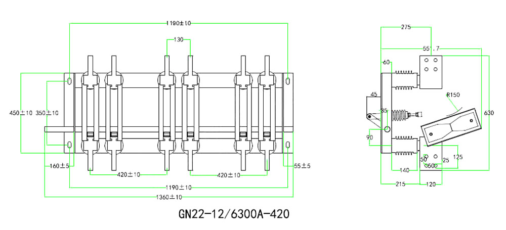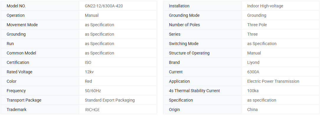 Sản phẩm này là công tắc cách ly dòng điện cao với cấu trúc dao đáy chung ba pha. Nó sử dụng nguyên mẫu khóa cơ học với hành động đóng và tiếp xúc gồm hai bước, đạt được sự tiếp xúc không mài mòn, lực vận hành nhỏ, áp suất tiếp xúc cao và độ ổn định nhiệt động tốt.