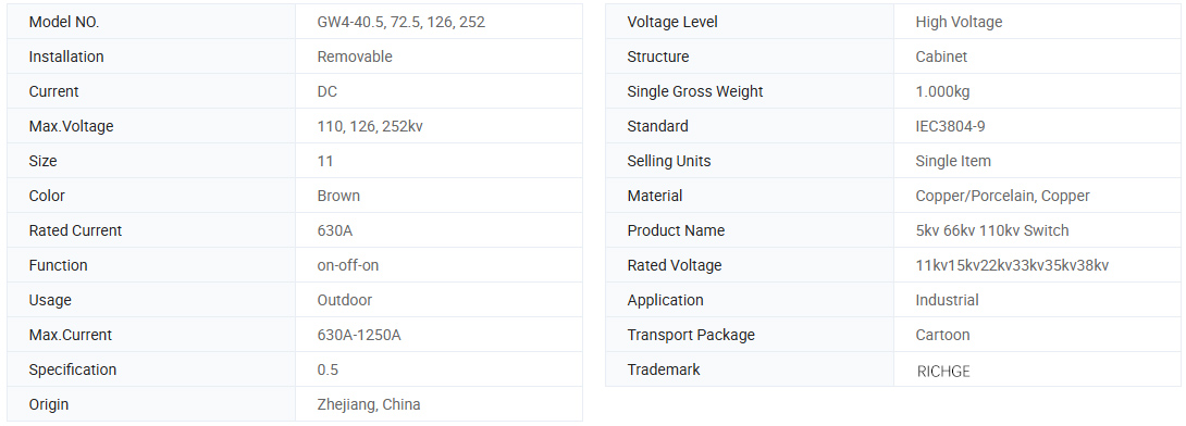 Công tắc ngắt điện áp cao AC ngoài trời GW4-12(40.5) dùng để đóng mở mạch điện có điện áp nhưng không tải 50/60Hz, hệ thống điện 12(40.5)kV. Nó phù hợp với các tiêu chuẩn của Công tắc ngắt kết nối AC và Công tắc nối đất IEC129-1984 và GB1985 và các tiêu chuẩn liên quan khác.