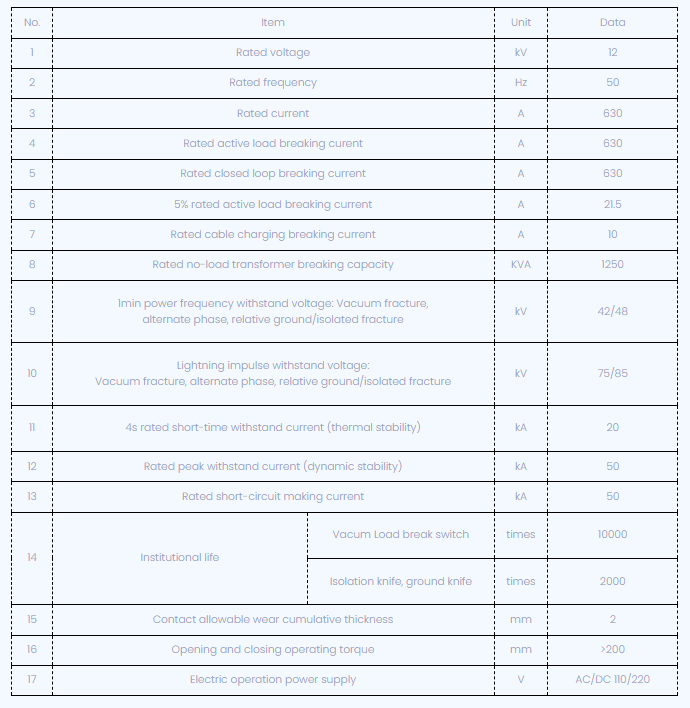Sản phẩm này có cấu trúc nhỏ gọn, khối lượng nhỏ, tuổi thọ dài, khả năng đóng cửa và phá vỡ mạnh mẽ, và vận hành và bảo trì dễ dàng. Công tắc chân không được trang bị cơ chế hoạt động lò xo, áp dụng lưu trữ năng lượng lò xo động cơ điện (hướng dẫn sử dụng), và có hai loại phương pháp đóng: đóng điện và phân tách thủ công và đóng. Công tắc ngắt kết nối, công tắc chân không và công tắc tiếp đất được lồng vào nhau (lồng vào nhau cơ học) để ngăn chặn sự sai lệch.