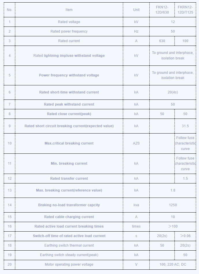 Công tắc phá vỡ tải trọng tải không khí FKN12-12D/630-20 (sau đây được gọi là FKRN12- 12D) và FKRN12-12D Series Break-Break-Break-Break và FUS