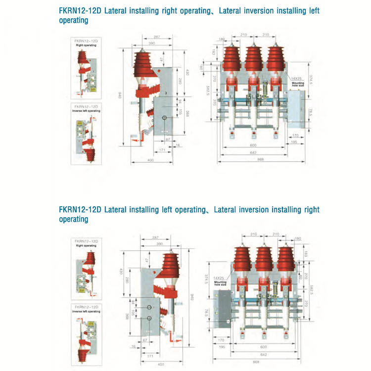 Sê-ri FKN12-12D Sê-ri Break Break Break và FKRN12-12D Series Break-Break Break-Break-Fitch-Fitch-Flatch-Fitch Octal là thiết bị chuyển mạch mới áp dụng cho hệ thống phân phối điện ba pha của hệ thống phân phối 12kV được xếp hạng, đóng vai trò là thiết bị bảo vệ và điều khiển cho máy biến áp, cáp và dây trên đầu. Các loạt này đặc biệt có thể áp dụng ở các trạm biến áp ở nông thôn, thiết bị đầu cuối đô thị và các trạm biến áp đúc sẵn, cũng như cung cấp năng lượng mạng lưới. FKN12-12D có thể phá vỡ và làm cho IOAD hiện tại và quá dòng. FKRN12-12D có thể phá vỡ và tạo dòng điện tải quá dòng và dòng điện ngắn dòng (cầu chì hiện tại IIMITED). Sản phẩm này được giới thiệu với sự xuất hiện thẩm mỹ cấu trúc tác động. Khả năng đáng tin cậy và mức độ cách điện cao. Trong cơ chế hoạt động lưu trữ lò xo, tốc độ bật/tắt không có ảnh hưởng của nhân lực. Đối với sự loại trừ hồ quang, loại trừ hồ quang bên trong nắp cách điện, khí tự do xảy ra khi tia lửa không gây ra mức độ cách điện giữa các pha và pha với trái đất. Các lớp vỏ cách điện phân tách phần điện khí hóa do đó tăng cường độ bảo vệ của đơn vị chính. Sự tiếp xúc bằng đồng và liên lạc chính mang theo độ dẫn đáng tin cậy và tuổi thọ dài. Sản phẩm này đạt được danh tiếng âm thanh do bảo trì và vận hành dễ dàng cũng như hiệu suất đáng tin cậy. Nó tuân thủ IEC62271-105.
