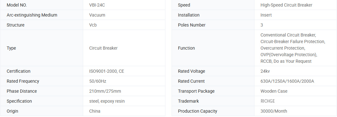 VBI-24 VCB thường được gắn vào bảng điều khiển KYN28 và XGN. Nó được áp dụng trong các trường hợp hoạt động thường xuyên, có các chức năng của bộ tái chế tốc độ cao, mở/đóng, khóa liên động cơ học đáng tin cậy. Nó có loại cố định và loại có thể rút được. Nó áp dụng vật liệu cách điện tổng hợp, không có nguy hiểm ô nhiễm và nổ, mức độ cách điện cao.