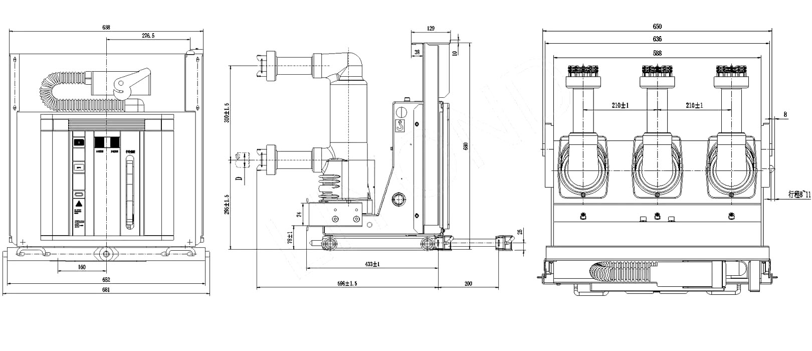 Kích thước của bộ ngắt mạch chân không loại VSG-12/2000A