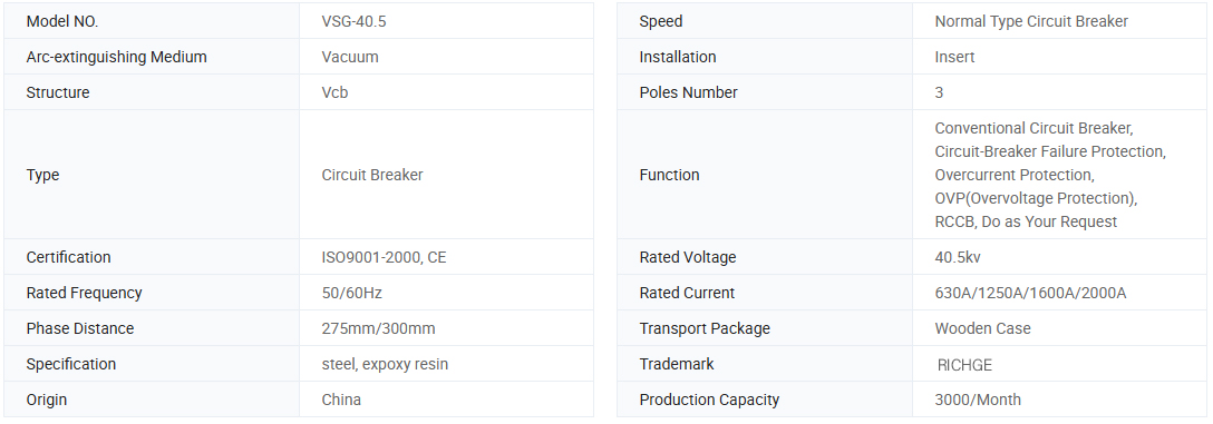 VSG-40.5C Lắp đặt loại bên trong nhà máy chân không điện áp cao trong nhà được sử dụng lò xo để lưu trữ năng lượng. Cơ chế vận hành có thể được vận hành theo hai cách, bằng hoạt động thủ công và điện động, các đặc điểm là theo bộ ngắt mạch AC điện áp cao GB1984-2003